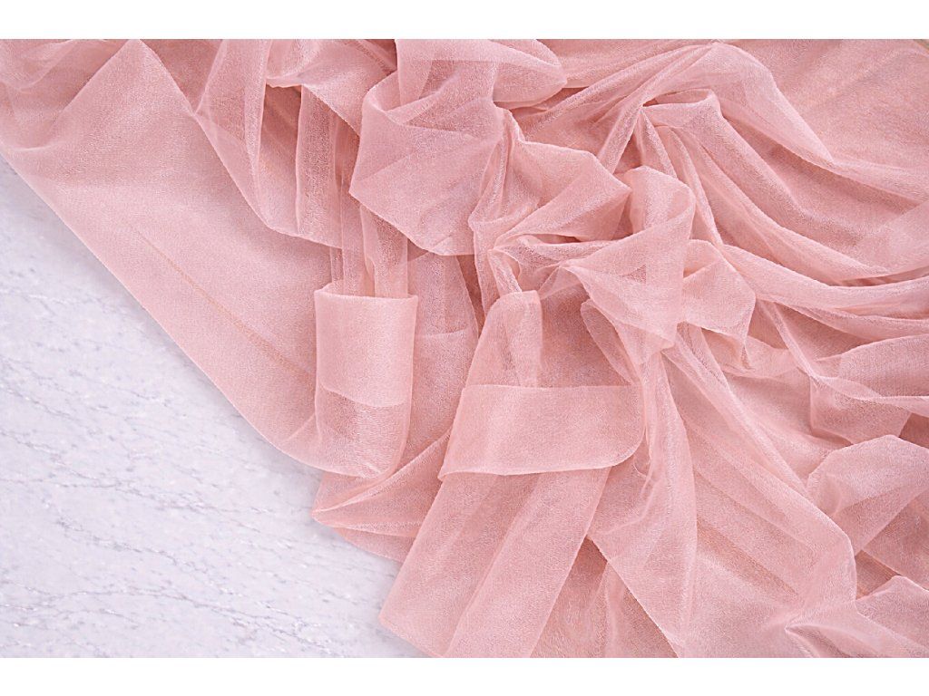 běhoun krepšifon pudrově růžový s jemnými třpytkami (3,2m/ 6,5m/ 10m), vyžehelený