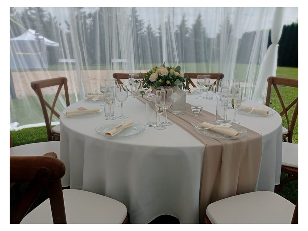 Šifonové běhouny (středový pás) na stůl jsou designovým doplňkem pro jakoukoli slavnostní událost. K běhounům do setu máme i další dekorace ve stejné barvě. Délka běhounu je 3,5m, tak aby jste u kulatých stolů měli z každé strany běhouny až na zem i s lehkým převisem na zemi. Běhouny můžete použít na stoly kulaté, hranaté, na sladký bar nebo na slavobrány na obřad. K běhounům máme i látkové ubrousky v béžové barvě ve variantě klasik i gázovina. Kraje běhounů jsou obšité. Běhouny se vrací nevyprané. Cena půjčovného je na 1-5 dní.