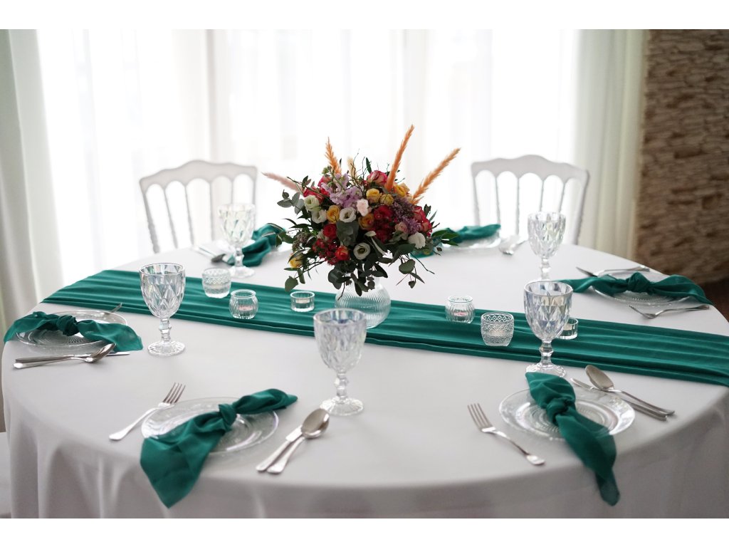 Šifonové běhouny (středový pás) na stůl jsou designovým doplňkem pro jakoukoli slavnostní událost. Designové běhouny krásně doladí Vaši slavnostní tabuli do nejmenších detailů. K běhounům do setu máme i další dekorace ve stejné barvě. Délka běhounu je 3,5m, tak aby jste u kulatých stolů měli z každé strany běhouny až na zem i s lehkým převisem na zemi. Běhouny o délce 5,5m jsou udělané, tak aby jste na hlavní tabuli nebo slavobráně u obřadu neměli spoje při navazování běhounů. Běhouny můžete použít na stoly kulaté, hranaté, vysoké bistro stolky, na sladký bar nebo na slavobrány na obřad. K běhounům máme i látkové ubrousky ve variantě klasik i přírodní gázovina. Kraje běhounů jsou obšité. Běhouny se vrací nevyprané. Cena půjčovného je na 1-5 dní.