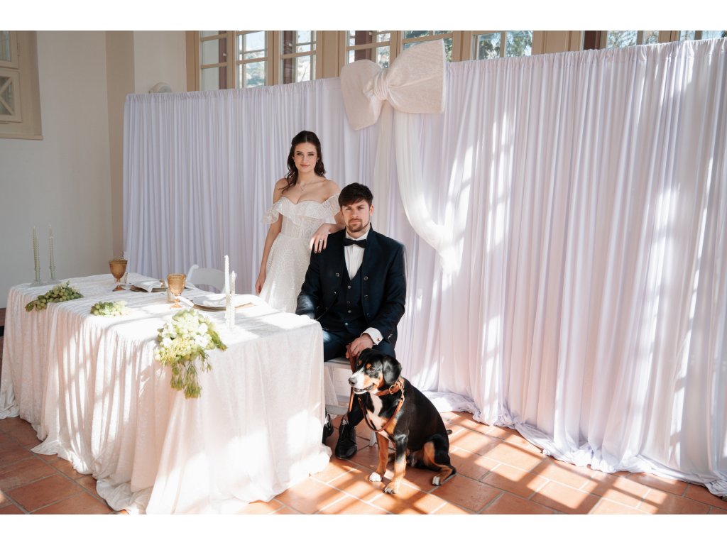 Velká konstrukce jako pozadí změní celý design a vizuální stránku jakékoli slavnostní události a pozvedne celý koncept o úroveň víš. Konstrukce není těžká a je lehce smontovatelná - můžete si ji namontovat sami a není potřeba profesionální montáže. Maximální velikost konstrukce je 6mx3m, ale lze její velikost zmenšit do šířky i do výšky. Na fotografii je velikost konstrukce 5m na šířku a 2,5m na výšku. Montáž konstrukce je velmi jednoduchá a látky jsou snadno navléknutélné tunýlkem jako záclony - za chvíli máte celou konstrukci i s látkami hotovou a není potřeba ji více upravovat. Látky není nutné většinou žehlit, jsou z nemačkavého materiálu. V ceně půjčovného je 8ks látek na pozadí, tak aby byly i krásně nařasené, popřípadě je můžete i křížit přes sebe a vytvořit jedinečný design celé stěny. Konstrukci s látkami můžete použít pro zakrytí stěny, jako fotokoutek nebo jako vytvoření uličky z obou stran (pro uličkou jsou potřeba 2 samostatné konstrukce). Látky jsou až na zem i s převisem na zemi. Doporučujeme k montování 2 osoby pro lepší manipulaci (v případě montáže 1osoby jej montujte nejdříve na zemi a až celou smontovanou konstrukci ze země pak zvedněte). V ceně půjčovného nejsou závaží na nohy konstrukce, lze je půjčit samostatně při postavení konstrukce venku a povětrnostních podmínek (uvnitř závaží není potřeba, konstrukce je stabilní). Cena půjčovného je na 1-5 dní.