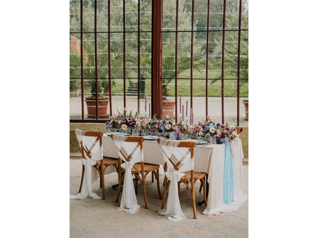 Ubrus v sametu jsou designovým doplňkem pro Vaši svatbu. Ubrus můžete použít na více navazujících stolů. Ve stejné barvě a materiálu máme i velký ubrus na hlavní tabuli , ubrus na bistro stolky a kulaté stoly. Velkou výhodou sametu je, že se ubrusy nemusejí žehlit. Ubrusy se vrací nevyprané. Cena půjčovného je na 1-5 dní.
