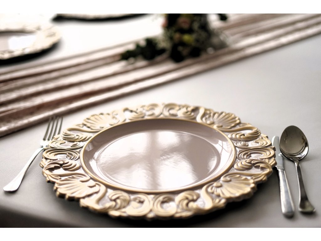 Dekorační nádobí je krásným doplňkem na svatební tabuli, dekorační servírování při uvítání hostů, sladký koutek nebo raut. Talíře můžete použít i jako dekoraci pod talíře na hlavní tabuli. Talíře se vrací čisté. Cena půjčovného je na 1-5 dny.
