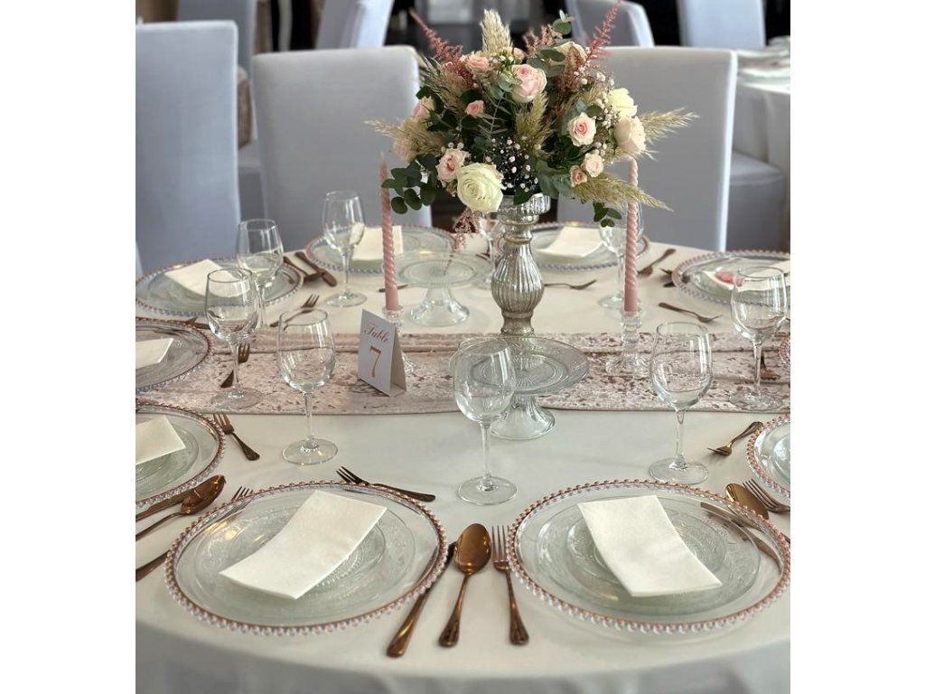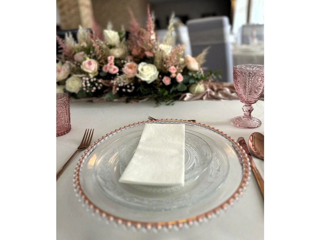 Klubový talíř je designovým doplňkem pro jakoukoli slavnostní událost. Ke klubovým talířům máme do setu i příbory a další dekorace ve stejné barvě. Talíře můžete použít na celou slavnostní tabuli nebo jen na hlavní stůl. Talíře nelze mít v myčce na nádobí, v případě zašpinění jen jemně otřít vlhkým hadříkem. Na klubových talířích se neservíruje ani nekonzumuje jídlo (z důvodu případného poškození), jsou jen dekoračním doplňkem. Cena půjčovného je na 1-4 dní.