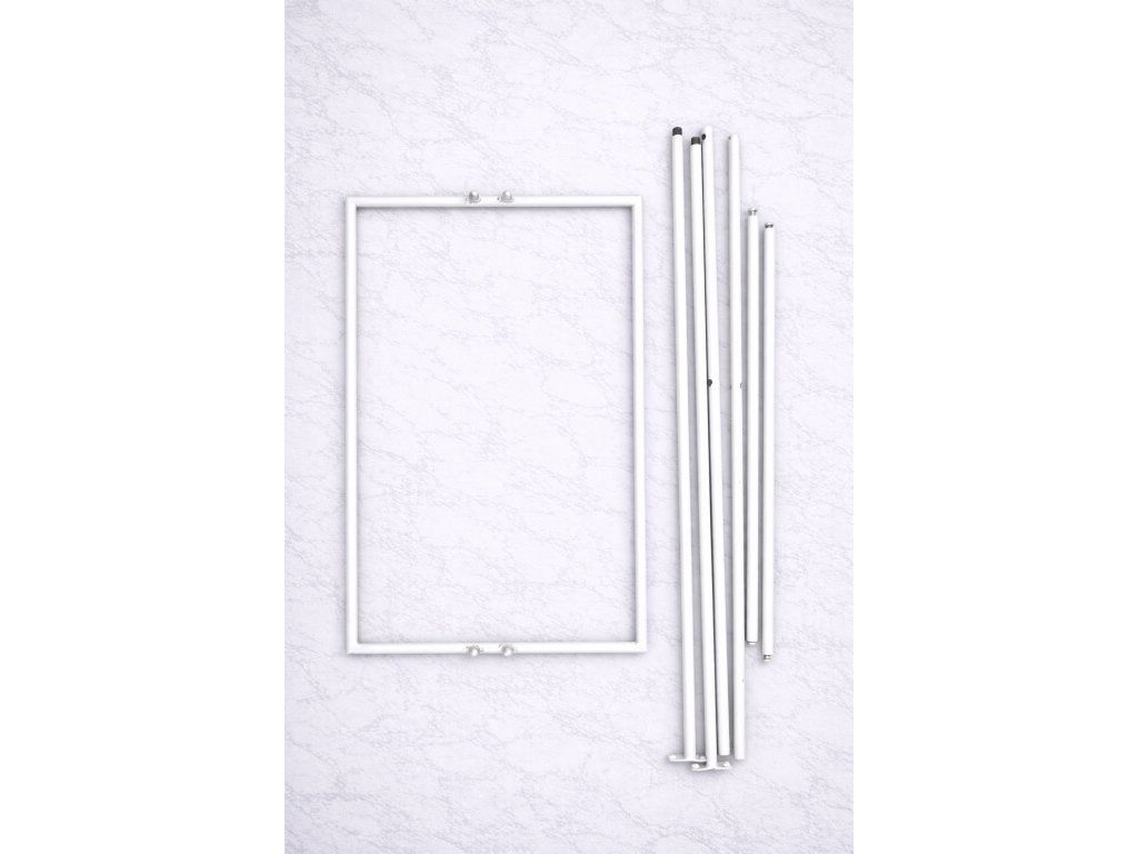 Rozměry: výška 155 cm, šířka 54 cm, hloubka 32 cm (stojan se půjčuje rozložený v rozměrů 32cmx65cm)