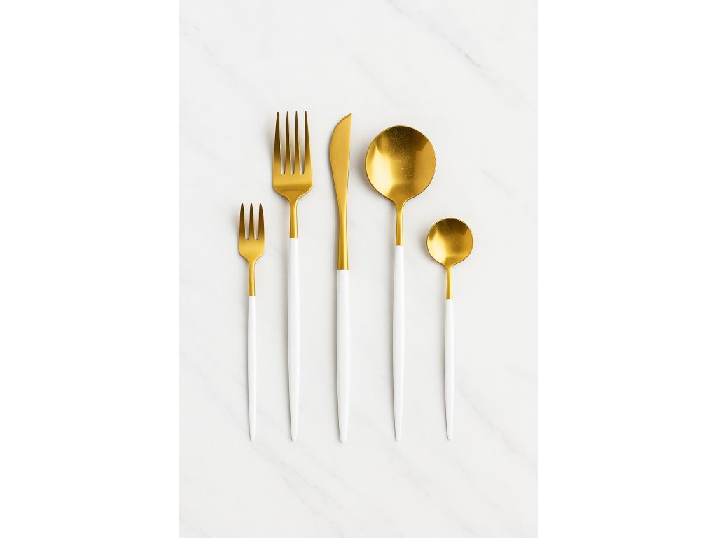 Příbory v bílo-zlaté kombinaci jsou krásným doplňkem na jakoukoli slavnostní událost. Příbory můžete mít jen na hlavní tabuli nebo na celou svatební tabuli. Příbory nelze mít v myčce. Příbory se půjčují již vyleštěné. Cena půjčovného je na 1-5 dny.