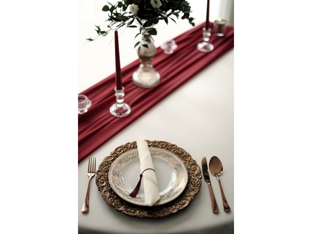 Dekorační nádobí je krásným doplňkem na svatební tabuli, dekorační servírování při uvítání hostů, sladký koutek nebo raut. Talíře můžete použít i jako dekoraci pod talíře na hlavní tabuli. Talíře se vrací čisté. Cena půjčovného je na 1-5 dny.