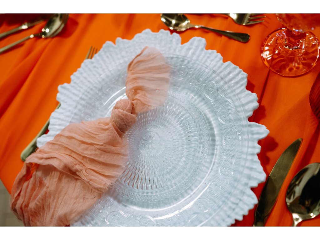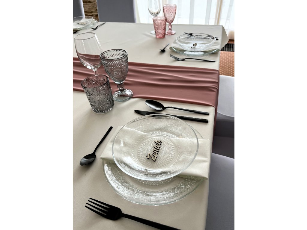 Sada dekoračních skleněných talířů v broušeném dekoru je krásným doplňkem pro Vaši svatbu. Talíře můžete použít jen na hlavní nebo celou svatební tabuli, dekorační servírování, sladký koutek nebo raut. Do setu k talířům jsou i misky, servírovací talíře a etažéry v různých variantách. Ve stejném dekoru máme i set na sladký bar. Talíře lze mít v myčce. Cena půjčovného je na 1-4 dny.