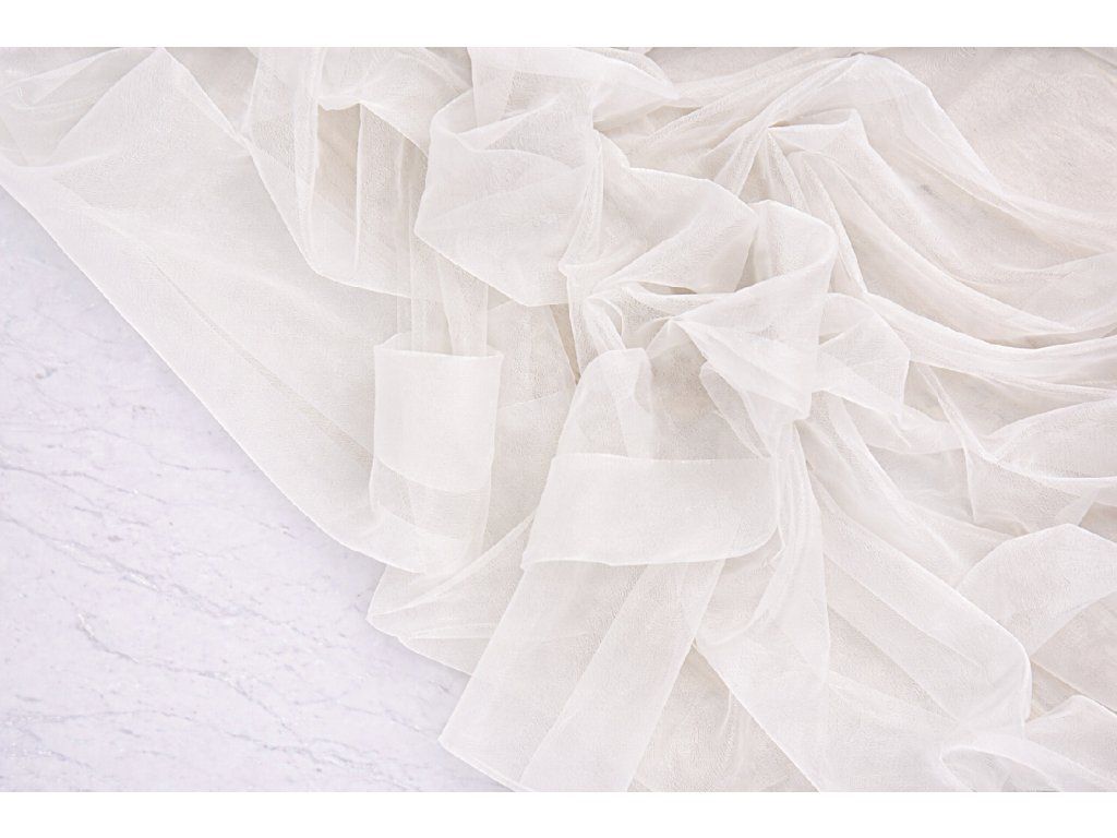 běhoun krepšifon lomená bílá/cloud dancer s jemnými třpytkami (3,3m/ 6,5m/ 10m), vyžehlený