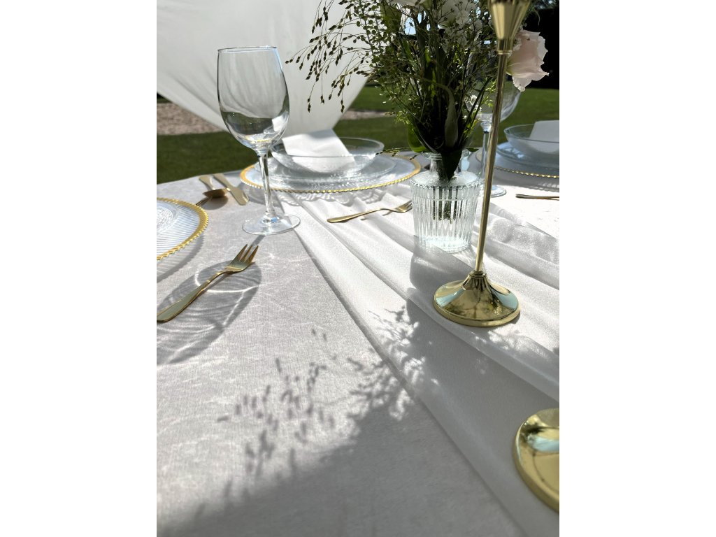 Luxusní šifonové běhouny (středový pás) na stůl jsou designovým doplňkem pro jakoukoli slavnostní událost. Designové běhouny krásně doladí Vaši slavnostní tabuli do nejmenších detailů. K běhounům do setu máme i další dekorace ve stejné barvě. Délka běhounu je 3,3m, tak aby jste u kulatých stolů měli z každé strany běhouny až na zem i s lehkým převisem na zemi. Běhouny o délce 6,5m a 10m jsou udělané tak, aby jste na hlavní tabuli nebo slavobráně u obřadu neměli spoje při navazování běhounů. Běhouny můžete použít na stoly kulaté, hranaté, vysoké bistro stolky, na sladký bar nebo na slavobrány na obřad. K běhounům máme i látkové ubrousky ve variantě klasik i přírodní gázovina. Kraje běhounů nejsou obšité-jedná se o pevnou látku a kraje se netřepí (švy na koncích této látky spíše kazí vizuální dojem lehkosti) . Jedná se o nemačkavý materiál a často se nemusí ani přežehlovat. Běhouny se vrací nevyprané. Cena půjčovného je na 1-5 dní.
