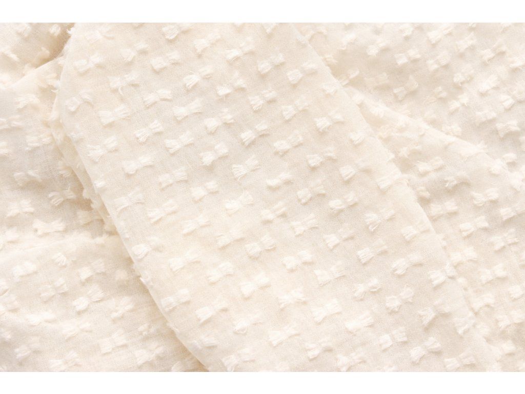 běhoun šifon smetanový s mašličkami boho romantic (3,5m, 7,8m), vyžehlený