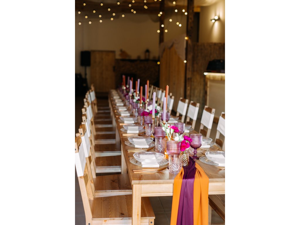Látková běhouny (středový pás) na stůl jsou designovým doplňkem pro jakoukoli slavnostní událost. Designové běhouny krásně doladí Vaši slavnostní tabuli do nejmenších detailů. K běhounům do setu máme i další dekorace ve stejné barvě. Délka běhounu je 3,5m, tak aby jste u kulatých stolů měli z každé strany běhouny až na zem i s lehkým převisem na zemi. Běhouny o délce 5,5m jsou udělané, tak aby jste na hlavní tabuli nebo slavobráně u obřadu neměli spoje při navazování běhounů. Běhouny můžete použít na stoly kulaté, hranaté, vysoké bistro stolky, na sladký bar nebo na slavobrány na obřad. K běhounům máme i látkové ubrousky ve variantě klasik i přírodní gázovina. Kraje běhounů jsou obšité. Jedná se o materiál, který se často nemusí ani přežehlovat. Běhouny se vrací nevyprané. Cena půjčovného je na 1-5 dní.