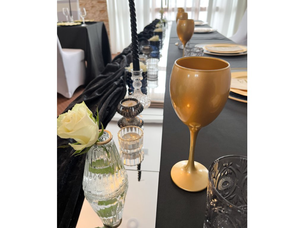 Dekorační sklenice jsou designovým doplňkem pro jakoukoli slavnostní událost. Sklenice můžete použít na celou slavnostní tabuli nebo jen na hlavní stůl. Barvy sklenic můžete krásně kombinovat. Ke sklenicím máme do setu i vázy a svícny ve stejných barvách. Cena půjčovného je na 1-5 dní.