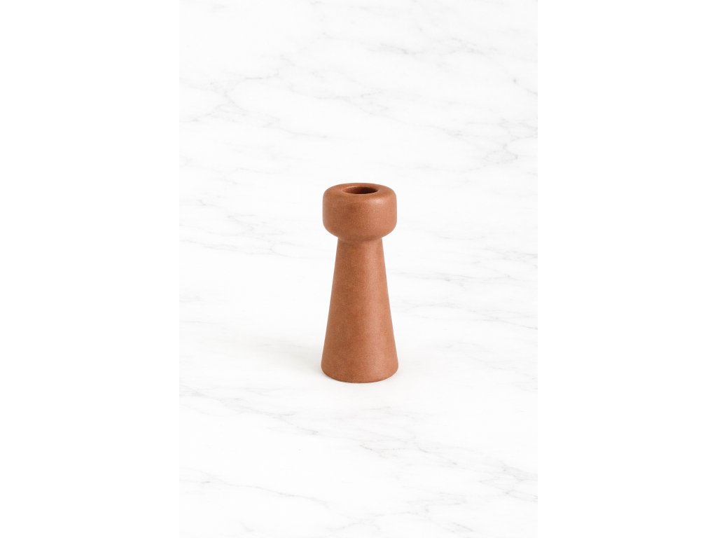 svícen tmavě béžovo-cihlový boho na vysokou svíčku