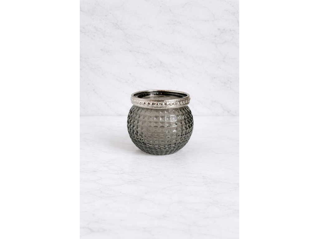 svícínek tmavě šedý se stříbrným okrajem na čajovou svíčku