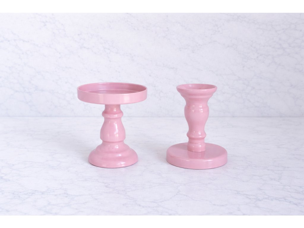 svícen růžový na válec i kónickou vysokou svíčku