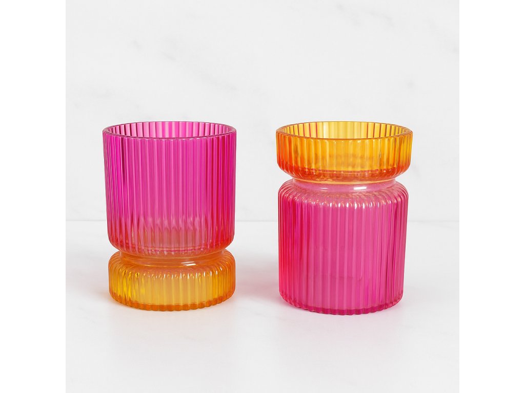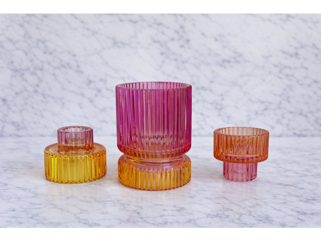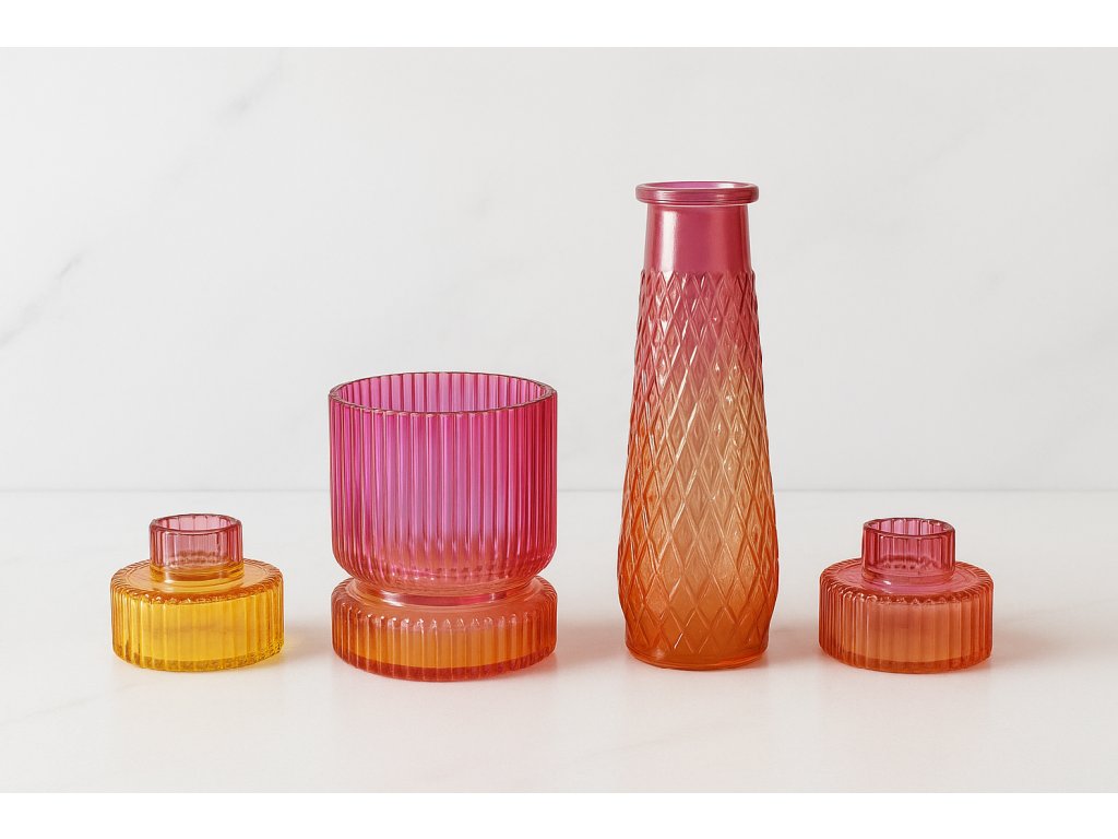 Vázičky jsou designovým doplňkem pro jakoukoli slavnostní událost. Vázičky a svícny krásně doladí Vaši slavnostní tabuli do nejmenších detailů. Ke svícnům máme do setu i další dekorace ve stejné barvě. Vázičku lze použít i jako svícínek na velkou čajovou svíčku. Cena půjčovného je na 1-5 dní.